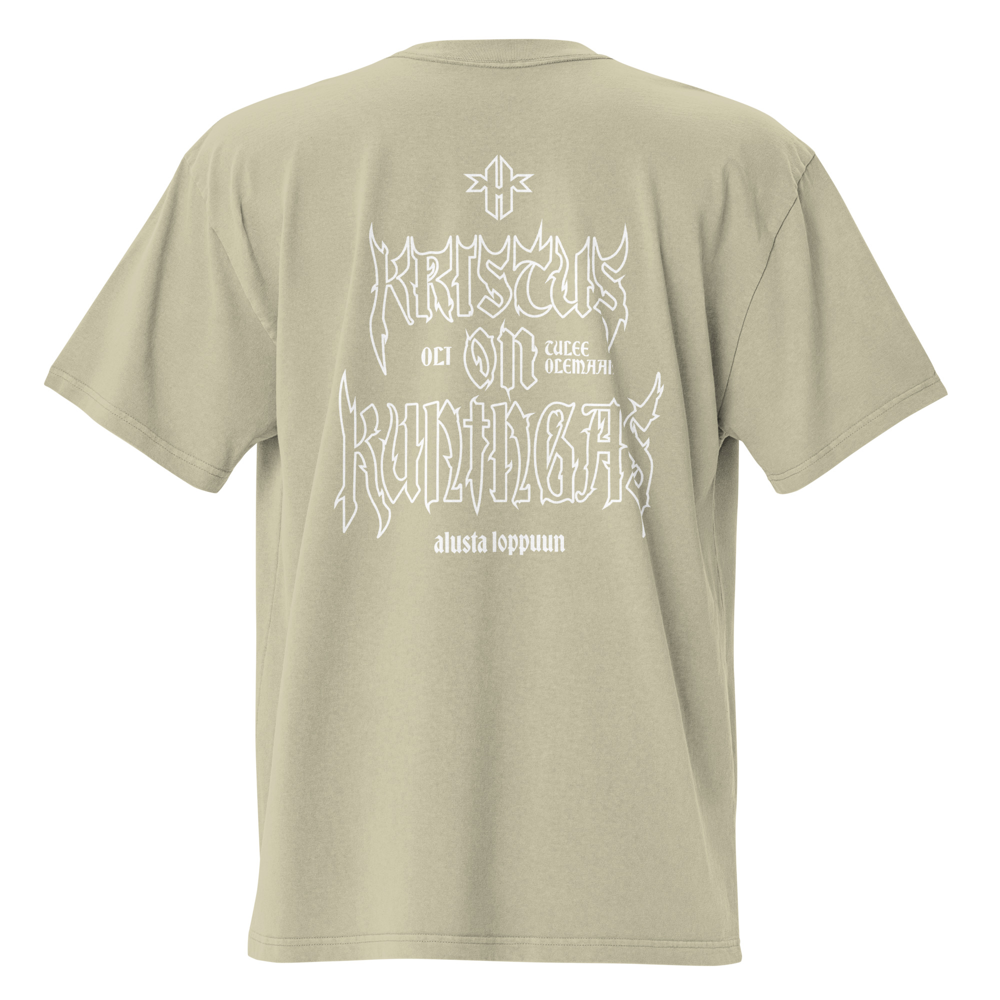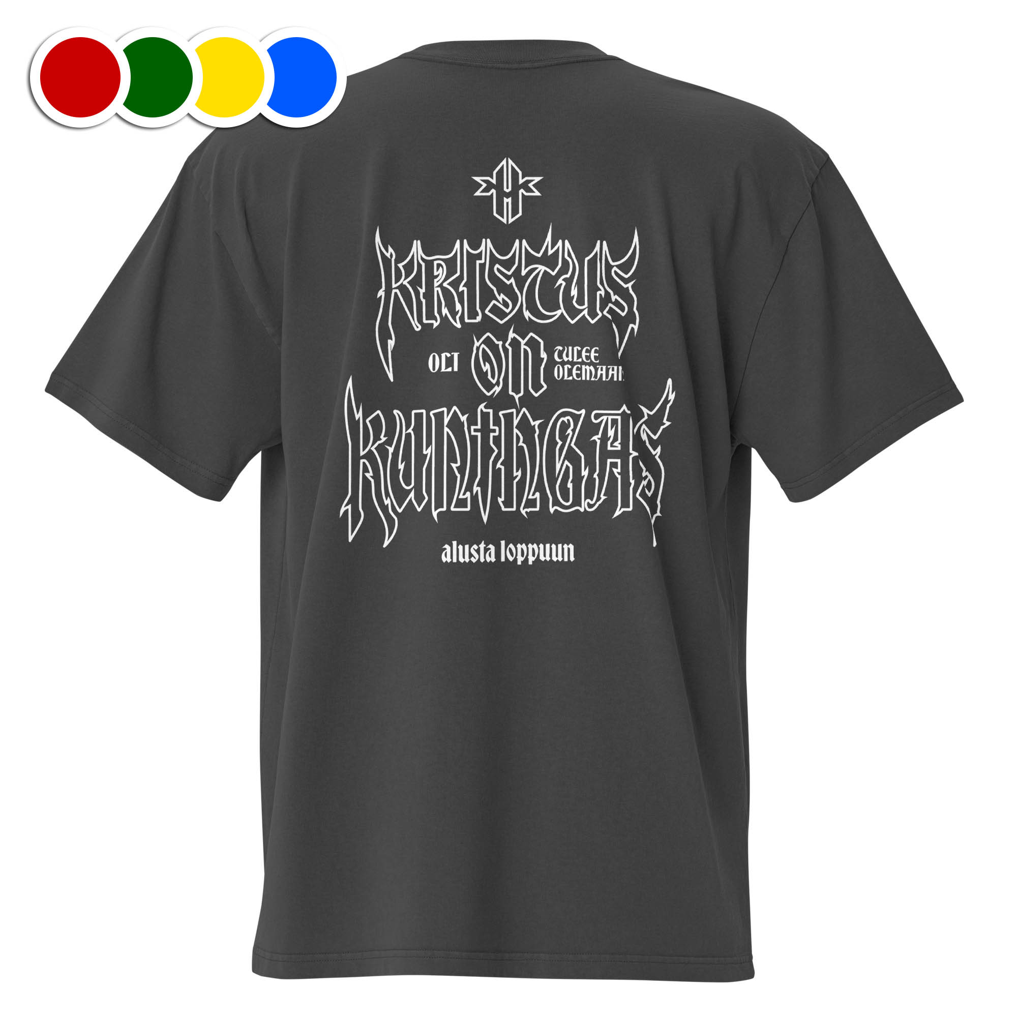 ”Kristus On Kuningas” -grafiikalla varustettu reilunkokoinen oversized t-paita!