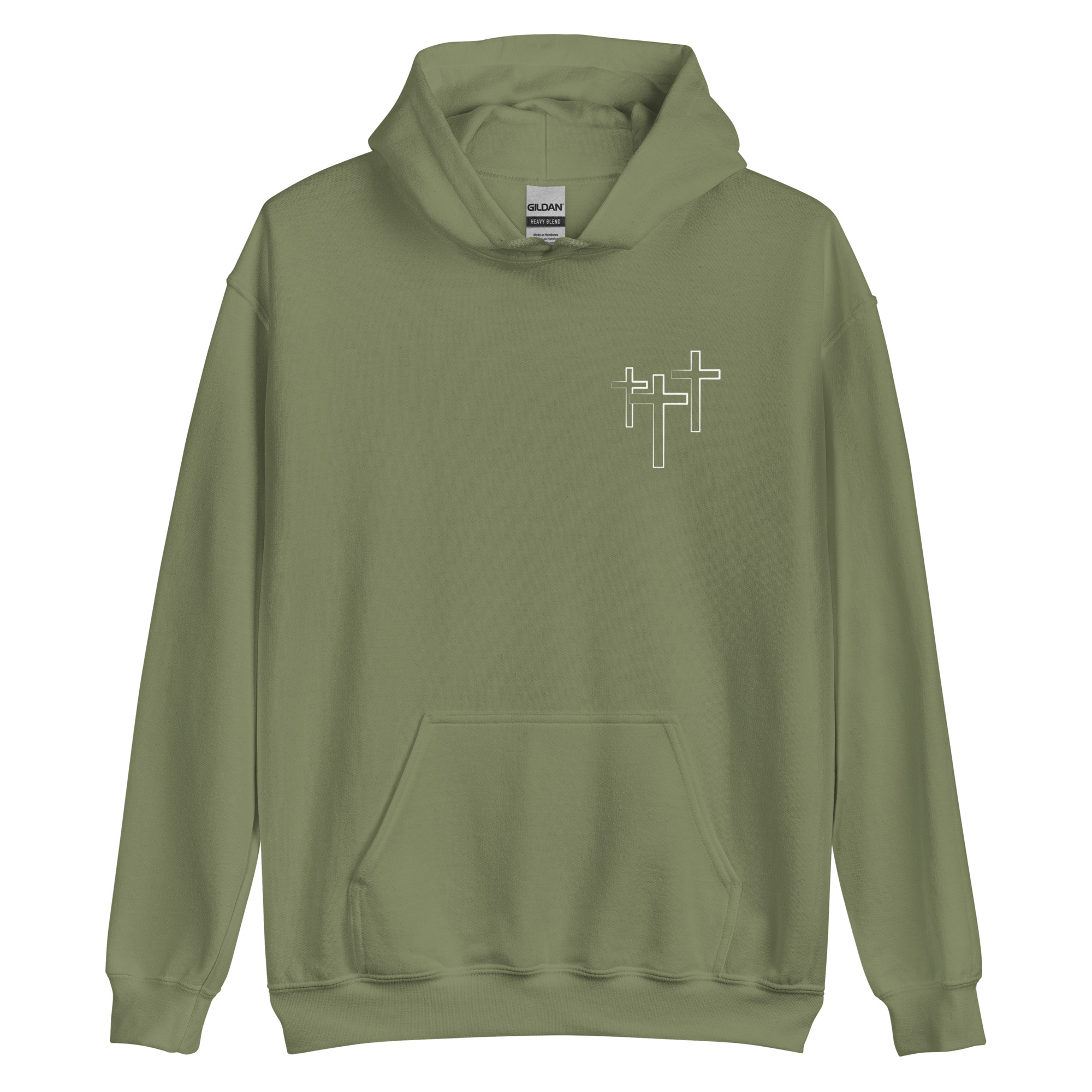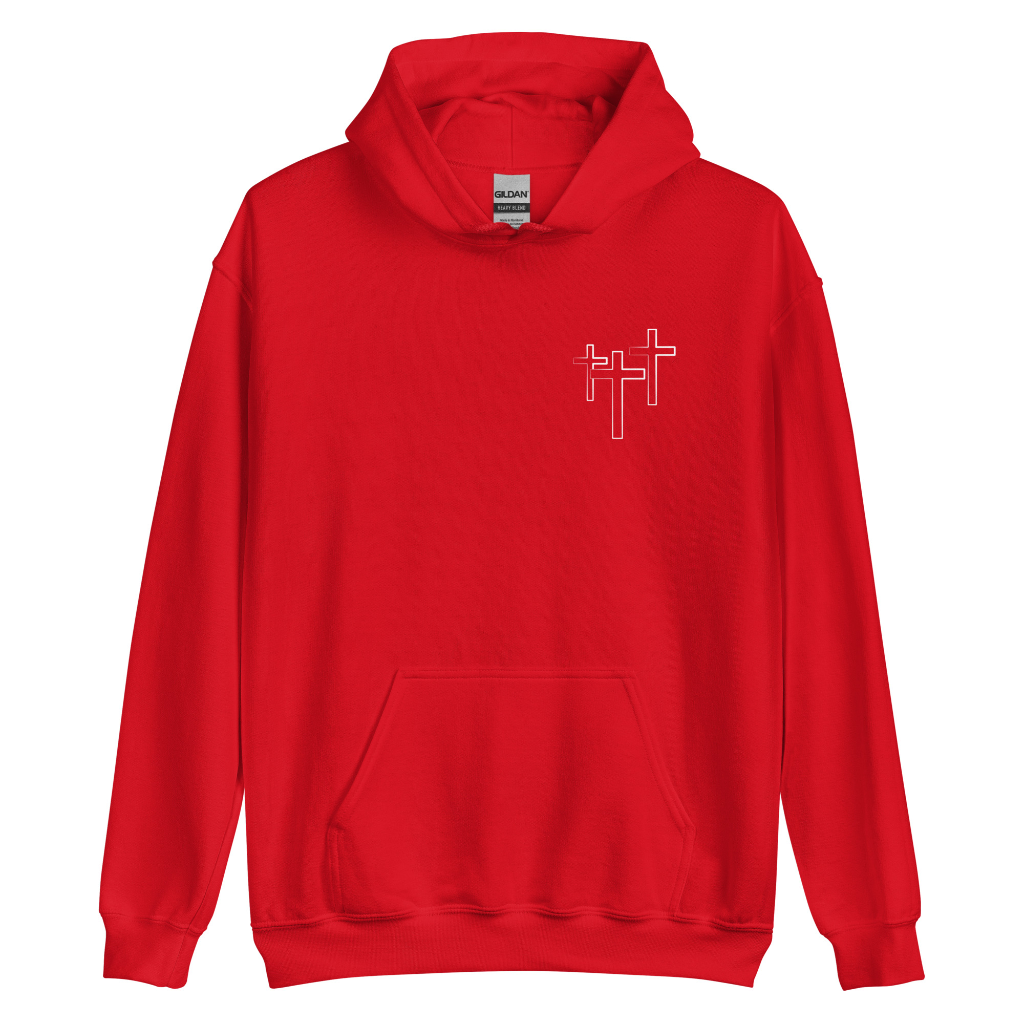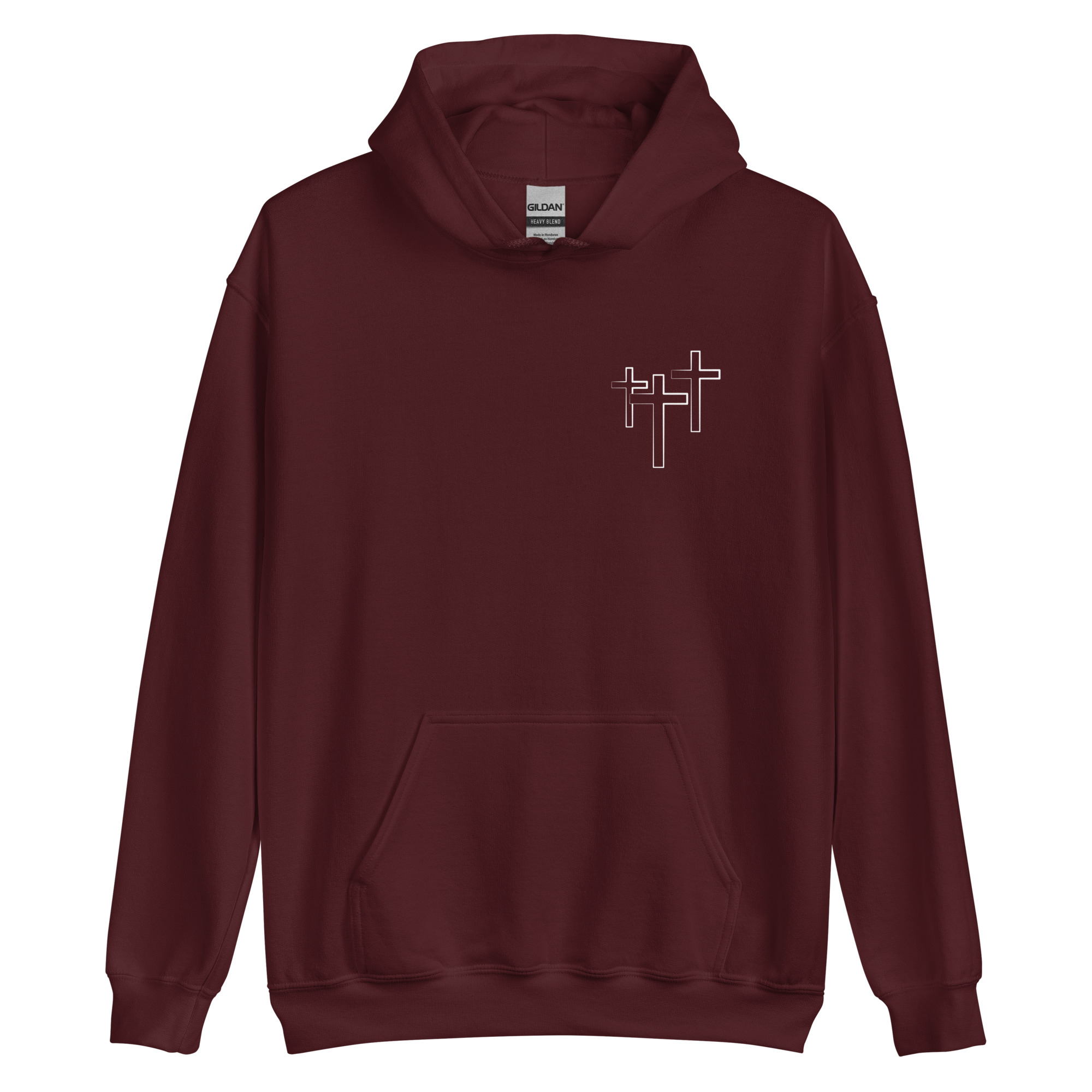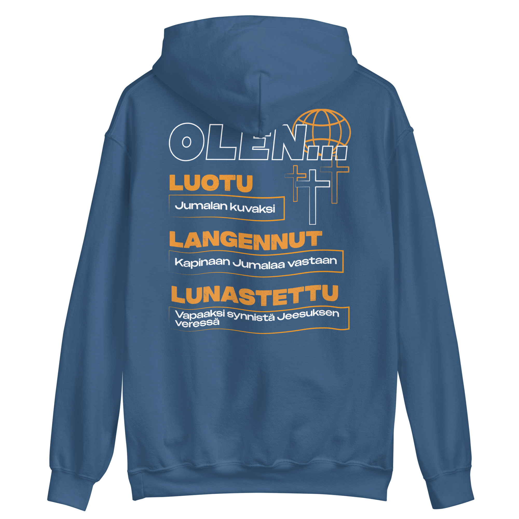 ”Olen Luotu, Langennut ja Lunastettu”-grafiikalla varustettu huppari.